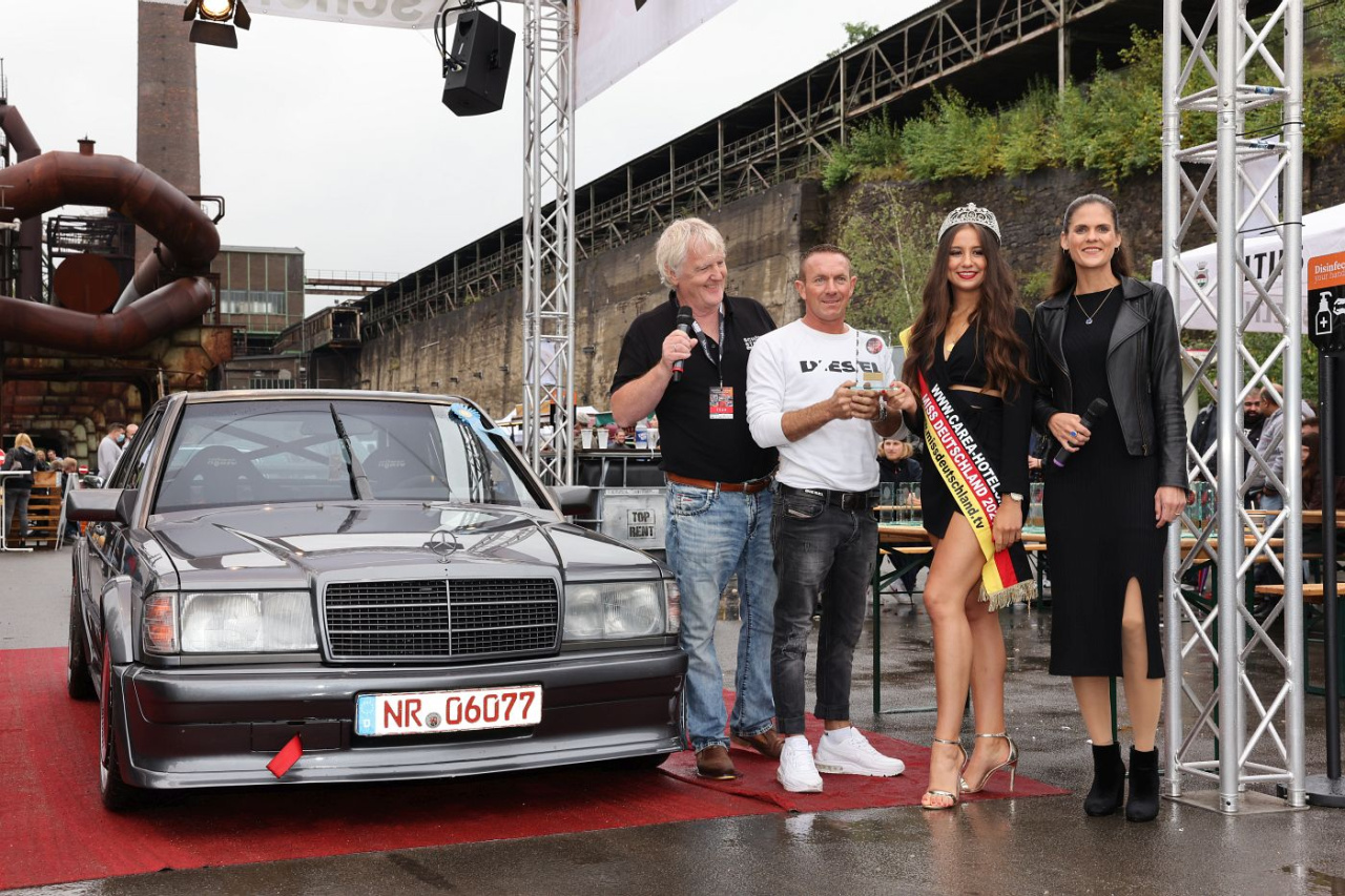 Die Bewertung übrigens verlief nach den gleichen Statuten wie in den Vorjahren. Die von der Redaktion bestimmten Jury-Mitglieder suchten streng subjektiv ihre persönlichen Favoriten aus der Vielzahl der Fahrzeuge heraus, versah diese mit einer Schleife und die so ausgezeichneten Fahrzeuge erhielten hinterher auf dem Roten Teppich ihren Pokal - sponsored by Classic Analytics. Es gibt also bis auf die Ausnahmen "Weiteste Anreise", "Best of 50's", "Best of 60s" und "Best of 70s" keine Kategorien, sondern die Jury ist aufgefordert, aus der Vielzahl der angereisten Fahrzeuge 50 bemerkenswerte SCHÖNE STERNE herauszupicken. Ihr könnt uns glauben: Das ist gar nicht so einfach!