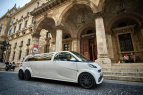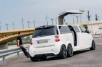 Die 5,5 Meter lange smart-stretchlimousine rollt auf drei Achsen an
