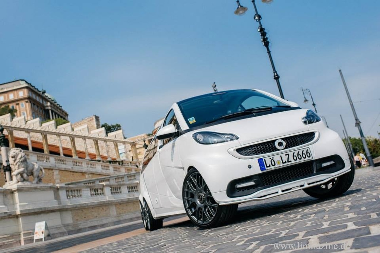 Die 5,5 Meter lange smart-stretchlimousine rollt auf drei Achsen an
