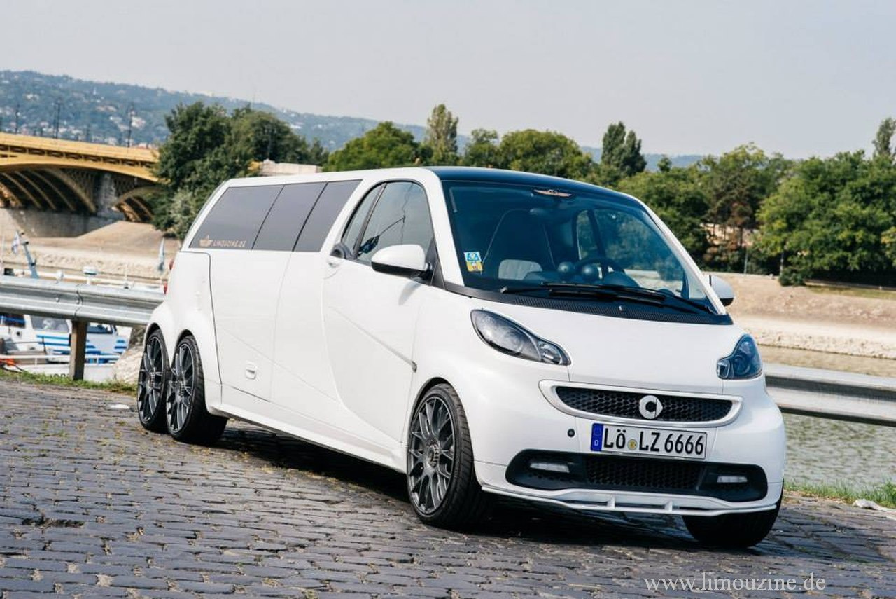 Die 5,5 Meter lange smart-stretchlimousine rollt auf drei Achsen an