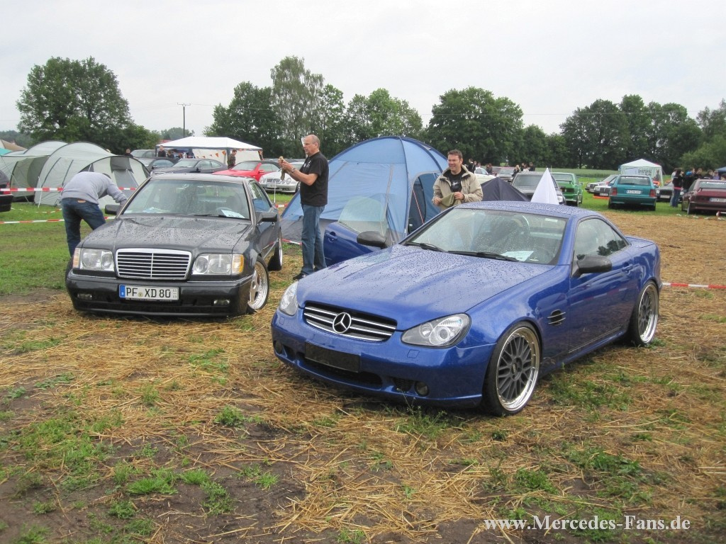 Das Mercedes-Team Harsewinkel/Füchtorf feierte am 16. Juni das 10-jährige Jubiläum von Deutschlands größtem Mercedes-Tuning-Treffen, das wie in den letzten Jahren auf dem Gelände der Pension Buschkotten in Sassenberg-Füchtorf stattfand. Und alle feierten mit, nur einer nicht: Petrus! Auch in diesem Jahr sorgte der Wettergott für eine Dusche von oben - leider nur in Form von Regen. Aber das tat weder der Veranstaltung noch der Stimmung einen Abbruch - die Jungs und Mädels kamen mit ihren Schönen Sternen wieder aus allen Himmelsrichtungen auf's Land, um Benzingespräche zu führen und die neuesten Umbauten zu präsentieren.