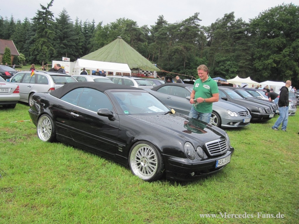 Das Mercedes-Team Harsewinkel/Füchtorf feierte am 16. Juni das 10-jährige Jubiläum von Deutschlands größtem Mercedes-Tuning-Treffen, das wie in den letzten Jahren auf dem Gelände der Pension Buschkotten in Sassenberg-Füchtorf stattfand. Und alle feierten mit, nur einer nicht: Petrus! Auch in diesem Jahr sorgte der Wettergott für eine Dusche von oben - leider nur in Form von Regen. Aber das tat weder der Veranstaltung noch der Stimmung einen Abbruch - die Jungs und Mädels kamen mit ihren Schönen Sternen wieder aus allen Himmelsrichtungen auf's Land, um Benzingespräche zu führen und die neuesten Umbauten zu präsentieren.