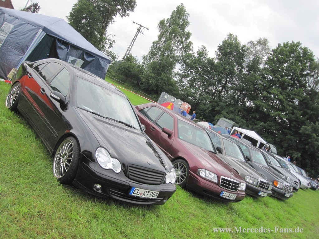 Das Mercedes-Team Harsewinkel/Füchtorf feierte am 16. Juni das 10-jährige Jubiläum von Deutschlands größtem Mercedes-Tuning-Treffen, das wie in den letzten Jahren auf dem Gelände der Pension Buschkotten in Sassenberg-Füchtorf stattfand. Und alle feierten mit, nur einer nicht: Petrus! Auch in diesem Jahr sorgte der Wettergott für eine Dusche von oben - leider nur in Form von Regen. Aber das tat weder der Veranstaltung noch der Stimmung einen Abbruch - die Jungs und Mädels kamen mit ihren Schönen Sternen wieder aus allen Himmelsrichtungen auf's Land, um Benzingespräche zu führen und die neuesten Umbauten zu präsentieren.