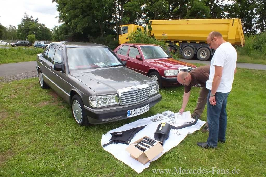Mit dem Wettergott im Bunde standen die Organisatoren des 9. Koblenzer Treffen des W201 e.V. Denn am Samstag schien am Mittag wunderschön die Sonen auf den Treffenplatz am "Alten Flugplatz" in Mendig. Rund 50 Mercedes-Fahrzeuge standen auf dem Treffengelände. Das Meeting war - wie schon in der Vergangenheit - vom W201 e.V. perfekt organisiert. Für alles, was ein Dreitagestreffen braucht, war in bester Weise Vorsorge getroffen. Speisen, Getränke, Duschen, WC und dann auch noch wie gesagt - Regenpause und reichlich Sonne. Kien Wuunder, dass unter diesne Vorzeichen alle Besucher des Treffens des W210 e.V. ein Lächeln im Gesicht hatten.