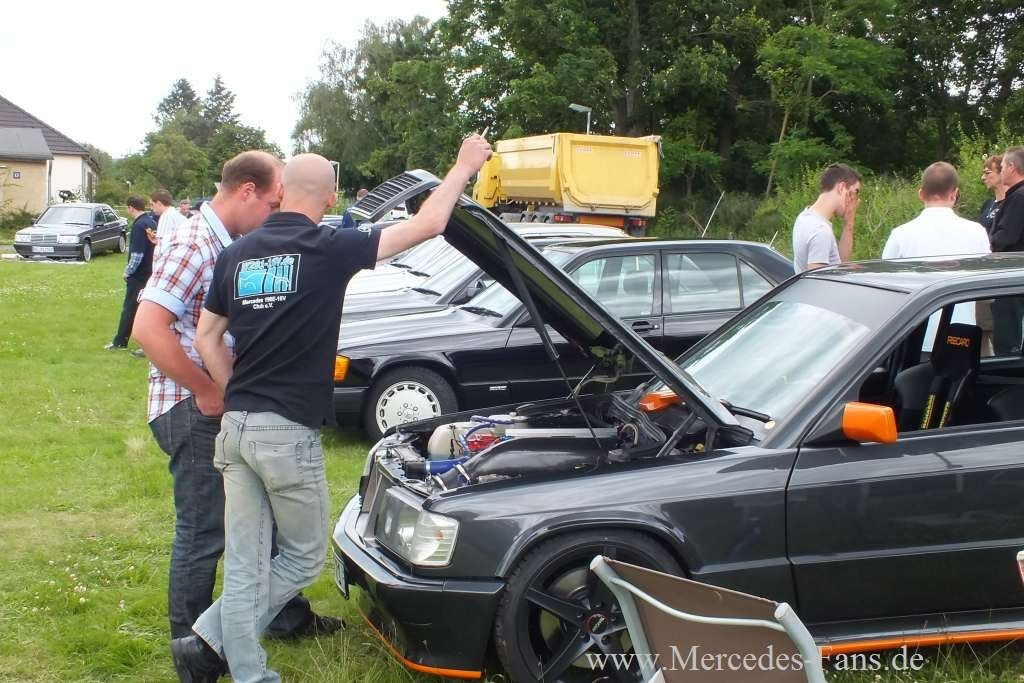Mit dem Wettergott im Bunde standen die Organisatoren des 9. Koblenzer Treffen des W201 e.V. Denn am Samstag schien am Mittag wunderschön die Sonen auf den Treffenplatz am "Alten Flugplatz" in Mendig. Rund 50 Mercedes-Fahrzeuge standen auf dem Treffengelände. Das Meeting war - wie schon in der Vergangenheit - vom W201 e.V. perfekt organisiert. Für alles, was ein Dreitagestreffen braucht, war in bester Weise Vorsorge getroffen. Speisen, Getränke, Duschen, WC und dann auch noch wie gesagt - Regenpause und reichlich Sonne. Kien Wuunder, dass unter diesne Vorzeichen alle Besucher des Treffens des W210 e.V. ein Lächeln im Gesicht hatten.