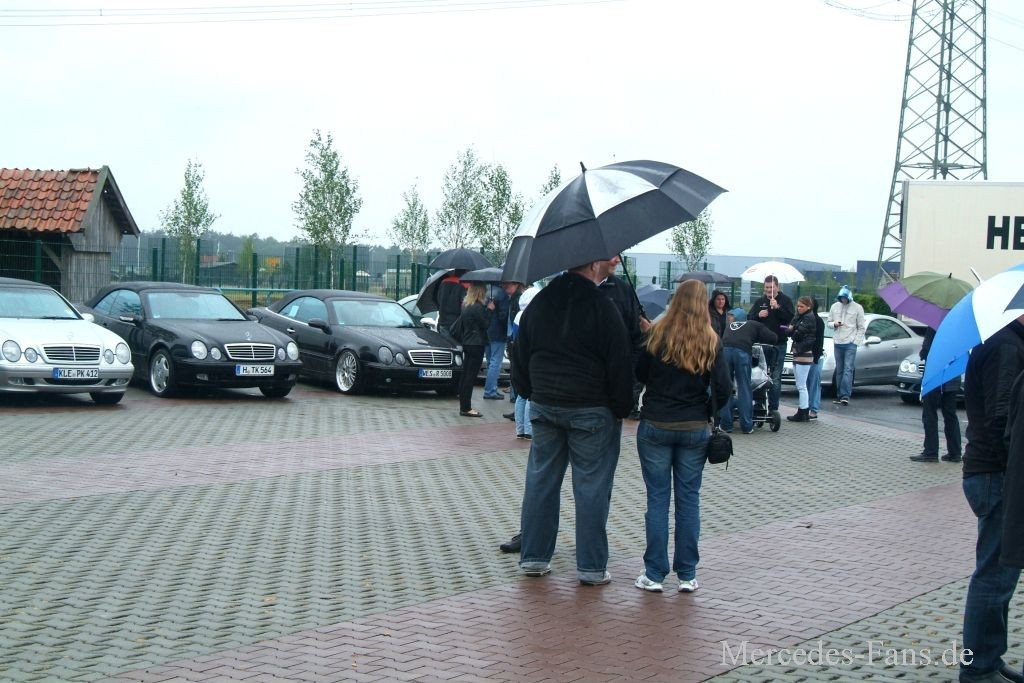 Eigentlich hatte alles gestimmt: die Organisation stand, die Location war gut gewählt und mit dem Erstlingstreffen 2011 hatten die CLK-Freunde „der harte Kern“ einen gut besuchten Auftakt abgeliefert. Diesmal aber machte Petrus den Mercedes-Fans einen Strich durch die Rechnung. Dauerregen ließ das Treffen zwar nicht ins Wasser fallen, aber mehr als der sprichwörtliche „harte Kern“ hatte sich aufgrund der düsteren Wettervorhersagen dann leider doch nicht nach Emsbüren aufgemacht.