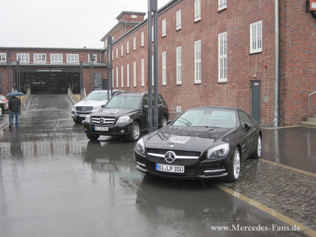 Kein guter Start für das Lenkwerk in Sachen Mercedes-Treffen am vergangenen Sonntag. Gerade einmal rund zwei Dutzend Schöne Sterne verirrten sich auf das Gelände des geschichtsträchtigen Gebäudes, das heute eine Anlaufstelle für Old- und Youngtimerfans ist– dem Lenkwerk Bielefeld. Seit Juli 2011 besteht das Dienstleistungszentrum mit Oldtimerdauerausstellung, und eine Reihe von Events soll die ehemalige Kaserne mit Leben füllen, so auch der Sternetreff am 3. Juni. Doch leider ist die Premiere des Mercedes-Treffen voll in Wasser gefallen – es regnete ohne Unterbrechung. Dennoch kamen einige Besitzer von Mercedes-Benz Modellen, darunter auch ein paar Oldtimer, zum Lenkwerk, vielleicht auch um bei dem angebotenen Jazz-Frühstück teilzunehmen. Wir hoffen auf eine Wiederholung in 2013 – und wünschen dem Veranstalter, den Teilnehmern (und uns) besseres Wetter...