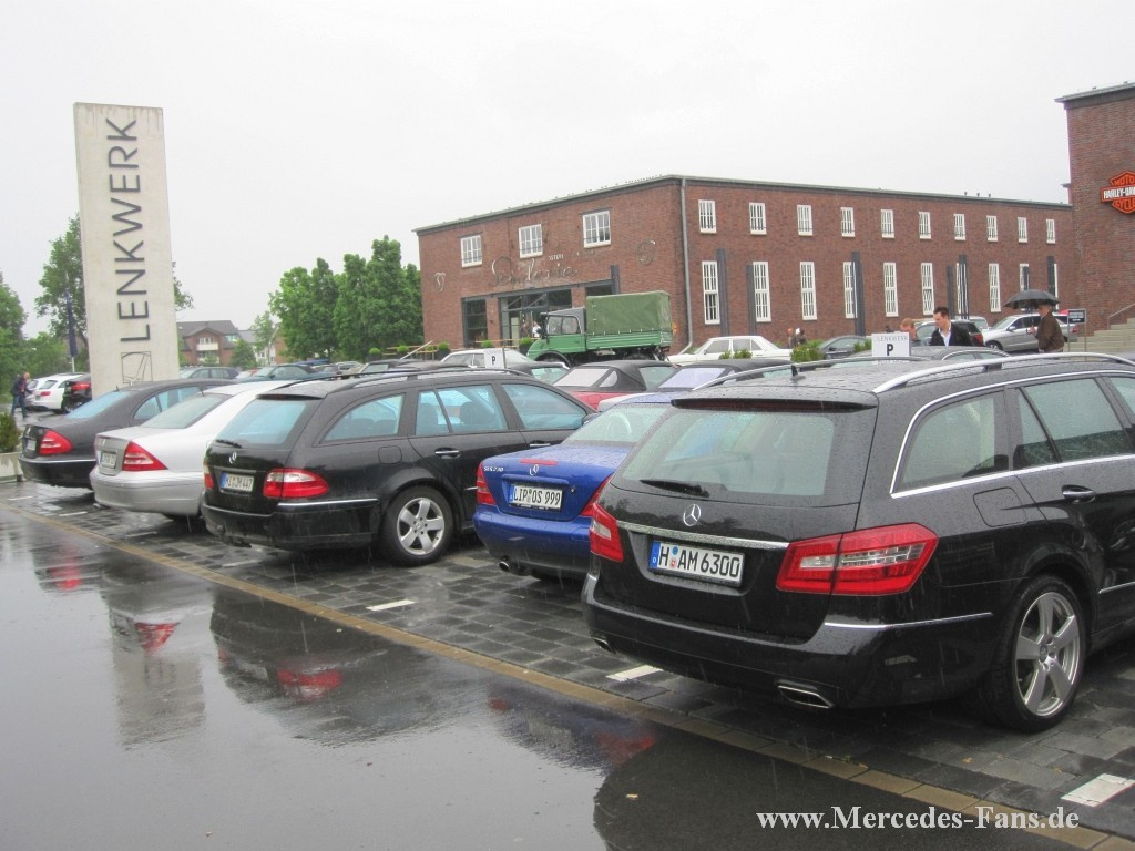 Kein guter Start für das Lenkwerk in Sachen Mercedes-Treffen am vergangenen Sonntag. Gerade einmal rund zwei Dutzend Schöne Sterne verirrten sich auf das Gelände des geschichtsträchtigen Gebäudes, das heute eine Anlaufstelle für Old- und Youngtimerfans ist– dem Lenkwerk Bielefeld. Seit Juli 2011 besteht das Dienstleistungszentrum mit Oldtimerdauerausstellung, und eine Reihe von Events soll die ehemalige Kaserne mit Leben füllen, so auch der Sternetreff am 3. Juni. Doch leider ist die Premiere des Mercedes-Treffen voll in Wasser gefallen – es regnete ohne Unterbrechung. Dennoch kamen einige Besitzer von Mercedes-Benz Modellen, darunter auch ein paar Oldtimer, zum Lenkwerk, vielleicht auch um bei dem angebotenen Jazz-Frühstück teilzunehmen. Wir hoffen auf eine Wiederholung in 2013 – und wünschen dem Veranstalter, den Teilnehmern (und uns) besseres Wetter...