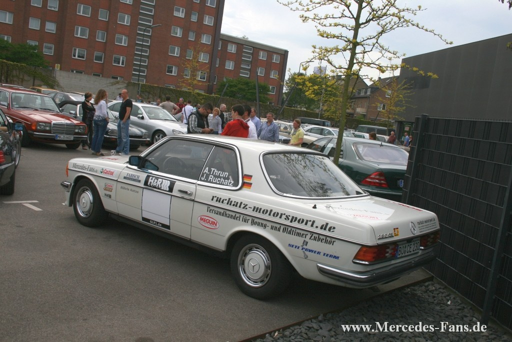 In Zusammenarbeit mit ruchatz-motorsport fand am 29. April das 9. Treffen des Verein für Freunde des W 123 e.V. . Bereits zum 4. Mal trafen sich die Alt-MB Fahrer auf dem Gelände der Classic Remise Düsseldorf. Eingeladen waren neben den Mercedes-Fans bis zu den Serien W140 und R129 auch BesitzerInnen anderer exotischer Fahrzeuge bis zum Produktionsjahr 1988. Und so standen auf dem abgesperrten Terrain auch einige amerikanische Autos und ältere Opel-Modelle. Daneben fanden sich ein S-Klasse Clubforum und die IG Mitten-im-Pott ein. Über den Tag verteilt konnten die Organisatoren rund 180 Fahrzeuge begrüßen, für den geregelten Ablauf der Veranstaltung sorgten übrigens die Jungs und Mädels der Daily Daimler Drivers. Im nächsten Jahr soll der Saisonauftakt laut der Classic Remise Sprecher Mika Hahn noch ausgebaut werden, dann wird es noch mehr Platz für Schöne Sterne geben...