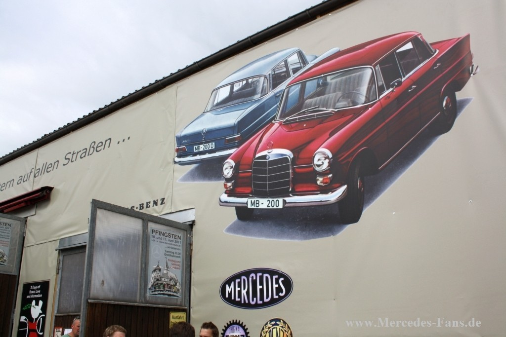 Wie jedes Jahr trafen sich Mercedes-Fans aus ganz Europa zum Pfingsttreffen in Ornbau. Die Kleinstadt im Herzen Bayerns beheimatete an diesem Wochenende rund 400 Mercedes, hauptsächlich Heckflossen, aber auch verwandte Baureihen wie Strich-8, W108 und W111 standen in den kleinen Straßen und Gassen der Stadt. Auch neuere Modelle mit dem Stern und Mercedes Youngtimer wie W123 und W126 fanden den Weg nach Bayern.