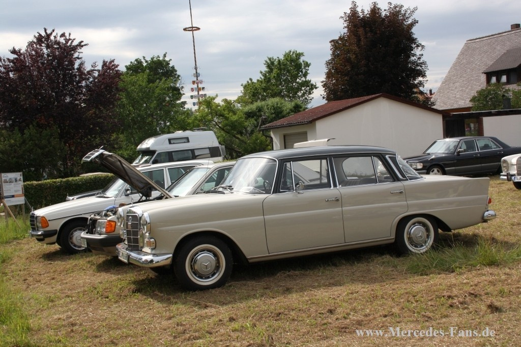 Wie jedes Jahr trafen sich Mercedes-Fans aus ganz Europa zum Pfingsttreffen in Ornbau. Die Kleinstadt im Herzen Bayerns beheimatete an diesem Wochenende rund 400 Mercedes, hauptsächlich Heckflossen, aber auch verwandte Baureihen wie Strich-8, W108 und W111 standen in den kleinen Straßen und Gassen der Stadt. Auch neuere Modelle mit dem Stern und Mercedes Youngtimer wie W123 und W126 fanden den Weg nach Bayern.