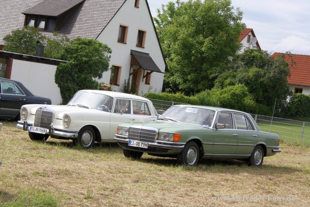 Wie jedes Jahr trafen sich Mercedes-Fans aus ganz Europa zum Pfingsttreffen in Ornbau. Die Kleinstadt im Herzen Bayerns beheimatete an diesem Wochenende rund 400 Mercedes, hauptsächlich Heckflossen, aber auch verwandte Baureihen wie Strich-8, W108 und W111 standen in den kleinen Straßen und Gassen der Stadt. Auch neuere Modelle mit dem Stern und Mercedes Youngtimer wie W123 und W126 fanden den Weg nach Bayern.