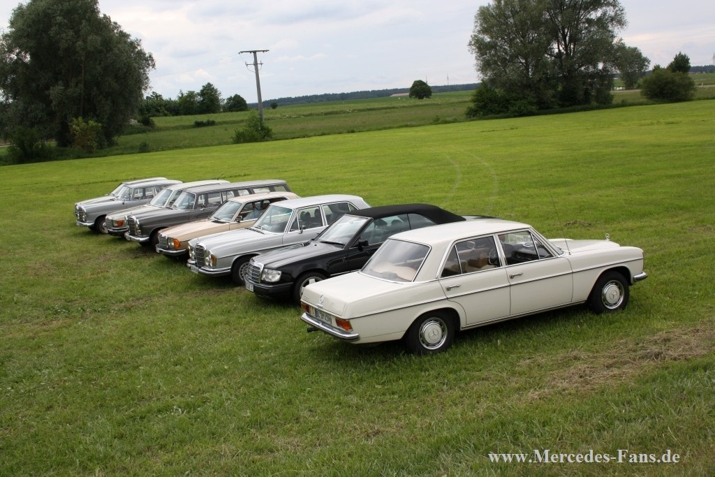 Wie jedes Jahr trafen sich Mercedes-Fans aus ganz Europa zum Pfingsttreffen in Ornbau. Die Kleinstadt im Herzen Bayerns beheimatete an diesem Wochenende rund 400 Mercedes, hauptsächlich Heckflossen, aber auch verwandte Baureihen wie Strich-8, W108 und W111 standen in den kleinen Straßen und Gassen der Stadt. Auch neuere Modelle mit dem Stern und Mercedes Youngtimer wie W123 und W126 fanden den Weg nach Bayern.