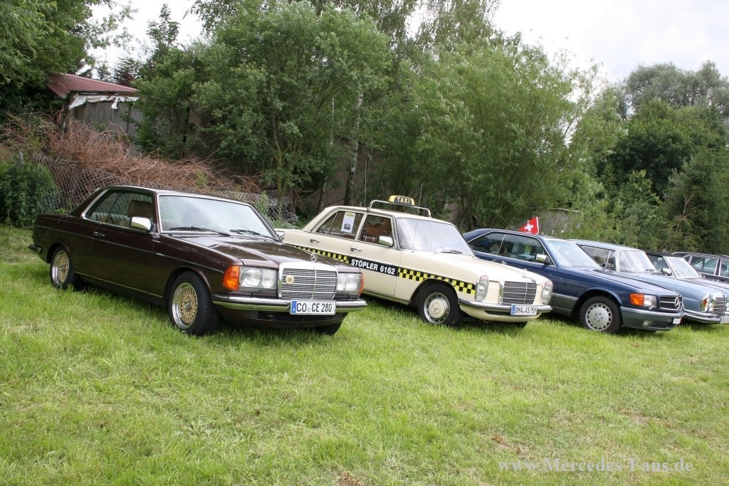 Wie jedes Jahr trafen sich Mercedes-Fans aus ganz Europa zum Pfingsttreffen in Ornbau. Die Kleinstadt im Herzen Bayerns beheimatete an diesem Wochenende rund 400 Mercedes, hauptsächlich Heckflossen, aber auch verwandte Baureihen wie Strich-8, W108 und W111 standen in den kleinen Straßen und Gassen der Stadt. Auch neuere Modelle mit dem Stern und Mercedes Youngtimer wie W123 und W126 fanden den Weg nach Bayern.