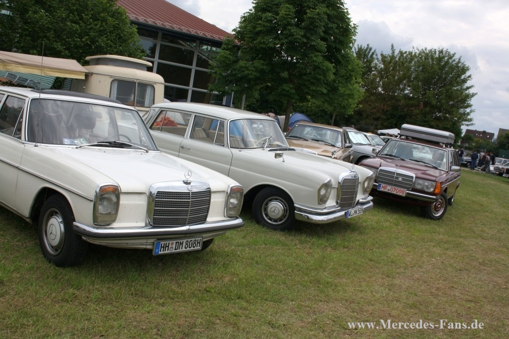 Wie jedes Jahr trafen sich Mercedes-Fans aus ganz Europa zum Pfingsttreffen in Ornbau. Die Kleinstadt im Herzen Bayerns beheimatete an diesem Wochenende rund 400 Mercedes, hauptsächlich Heckflossen, aber auch verwandte Baureihen wie Strich-8, W108 und W111 standen in den kleinen Straßen und Gassen der Stadt. Auch neuere Modelle mit dem Stern und Mercedes Youngtimer wie W123 und W126 fanden den Weg nach Bayern.