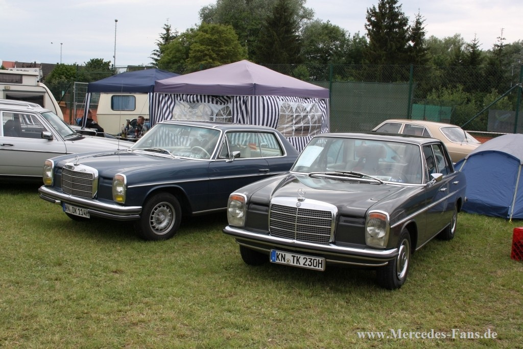 Wie jedes Jahr trafen sich Mercedes-Fans aus ganz Europa zum Pfingsttreffen in Ornbau. Die Kleinstadt im Herzen Bayerns beheimatete an diesem Wochenende rund 400 Mercedes, hauptsächlich Heckflossen, aber auch verwandte Baureihen wie Strich-8, W108 und W111 standen in den kleinen Straßen und Gassen der Stadt. Auch neuere Modelle mit dem Stern und Mercedes Youngtimer wie W123 und W126 fanden den Weg nach Bayern.