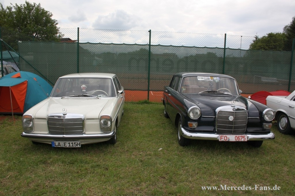 Wie jedes Jahr trafen sich Mercedes-Fans aus ganz Europa zum Pfingsttreffen in Ornbau. Die Kleinstadt im Herzen Bayerns beheimatete an diesem Wochenende rund 400 Mercedes, hauptsächlich Heckflossen, aber auch verwandte Baureihen wie Strich-8, W108 und W111 standen in den kleinen Straßen und Gassen der Stadt. Auch neuere Modelle mit dem Stern und Mercedes Youngtimer wie W123 und W126 fanden den Weg nach Bayern.