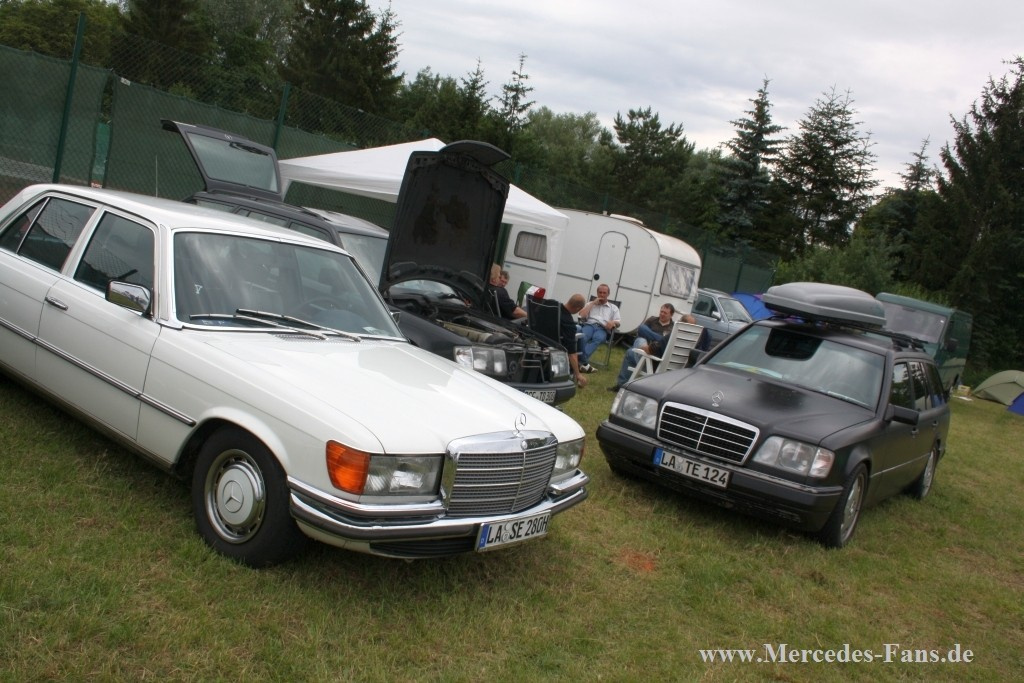 Wie jedes Jahr trafen sich Mercedes-Fans aus ganz Europa zum Pfingsttreffen in Ornbau. Die Kleinstadt im Herzen Bayerns beheimatete an diesem Wochenende rund 400 Mercedes, hauptsächlich Heckflossen, aber auch verwandte Baureihen wie Strich-8, W108 und W111 standen in den kleinen Straßen und Gassen der Stadt. Auch neuere Modelle mit dem Stern und Mercedes Youngtimer wie W123 und W126 fanden den Weg nach Bayern.
