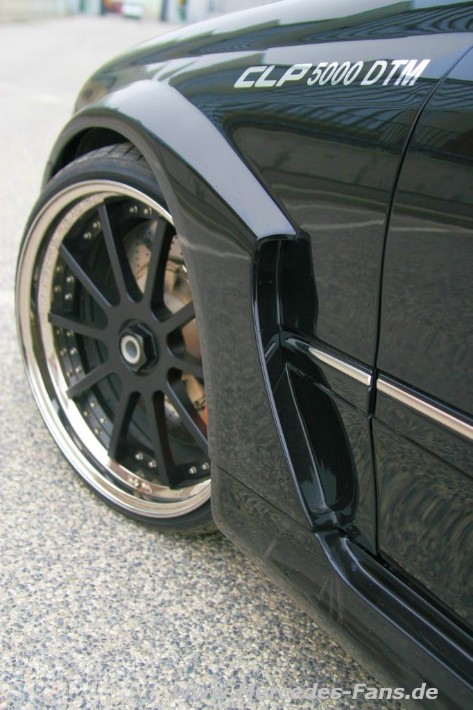 Breite Backen, geschmiedete Aluräder, Bremsscheiben groß wie Eisenbahnräder und ein furchterregender V8 Sound, das sind die markanten Merkmale des neuen CLP 5000 DTM Mercedes aus dem Hause CarLine. Ihr habt richtig gelesen, das Kürzel „DTM“ haben die Sinsheimer Tuner für nicht wenig Geld gekauft. So können die Mercedes Tuner ihren Karosserie-Kit mit der markanten Bezeichnung vermarkten. Doch in diesem Falle handelt es sich nicht um einen DTM-CLK von AMG für schlanke 236.000 Euro. Als Basis dient immerhin ein 500er mit Achtzylinder, welcher Dank Duplex Edelstahl Auspuffanlage kernig hörbar ist.