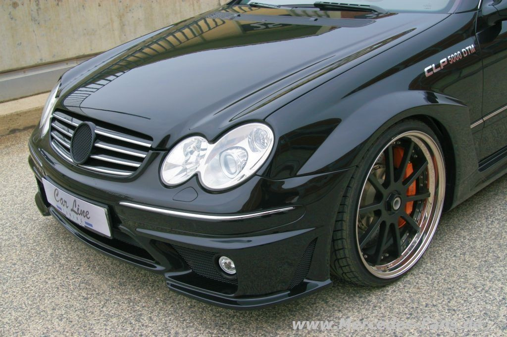 Breite Backen, geschmiedete Aluräder, Bremsscheiben groß wie Eisenbahnräder und ein furchterregender V8 Sound, das sind die markanten Merkmale des neuen CLP 5000 DTM Mercedes aus dem Hause CarLine. Ihr habt richtig gelesen, das Kürzel „DTM“ haben die Sinsheimer Tuner für nicht wenig Geld gekauft. So können die Mercedes Tuner ihren Karosserie-Kit mit der markanten Bezeichnung vermarkten. Doch in diesem Falle handelt es sich nicht um einen DTM-CLK von AMG für schlanke 236.000 Euro. Als Basis dient immerhin ein 500er mit Achtzylinder, welcher Dank Duplex Edelstahl Auspuffanlage kernig hörbar ist.