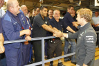 So einen Besuch hat man gerne auf der Matte: Die MERCEDES AMG PETRONAS Formel 1-Fahrer Nico Rosberg und Lewis Hamilton sowie Mercedes-Benz Motorsportchef Toto Wolff stimmten sich und ihre Mercedes-Benz Kollegen am Mittwoch, 3. Juli 2013 mit einem Besuch im Mercedes-Benz Werk in Sindelfingen auf den Großen Preis von Deutschland ein. Das deutsche Heimrennen des Silberpfeil-Teams findet vom ...,