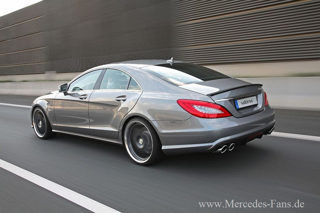 Mercedes Tuner VÄTH hat sich des Mercedes CLS angenommen. Ein Tuning-Kit namens V63RS mit individueller Feinabstimmung der Motorelektronik und Vmax-Anhebung kann aus 5.461 cm³ Hubraum mit 484 kW bzw. 660 PS, 960 Nm maximalem Drehmoment, dem Spurt aus dem Stand auf 100 km/h in 3,9 Sekunden, auf 200 km/h in 12,0 Sekunden sowie mit einer Höchstgeschwindigkeit von abgeregelten 325 km/h (Reifenfreigabe vorausgesetzt!) aufwarten.