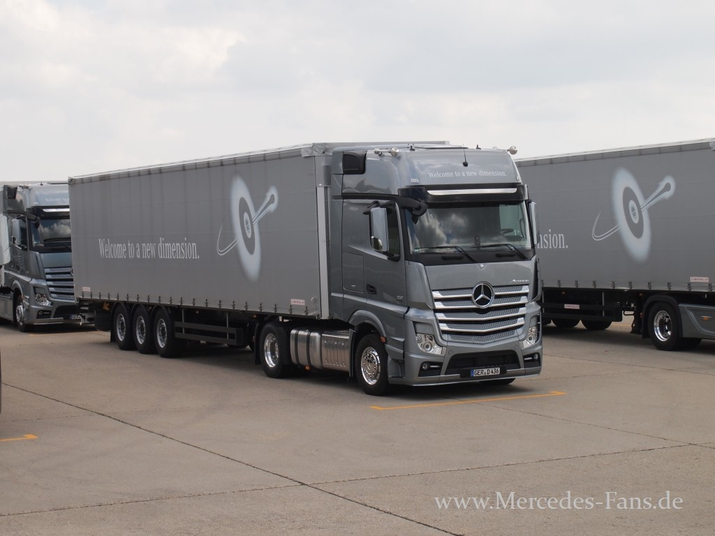 Nach einer phänomenalen Präsentation in Brüssel und seinem Auftritt auf der IAA traf Mercedes-Fans.de kurz danach ein drittes Mal auf das brandaktuelle Flaggschiff von Mercedes-Benz Lkw, den Actros neuester Generation. Doch diesmal sollte es nicht beim bloßen Bestaunen des Lkw-Boliden bleiben: Ein zweitägiges Programm stand auf dem Plan, das neben einer ausführlichen Fahrzeugvorstellung Touren über die Autobahn, zahlreiche Landstraßen und eine Teststrecke vorsah, bei denen der neue Actros sein Fahrpotential in der Praxis unter Beweis stellen durfte.