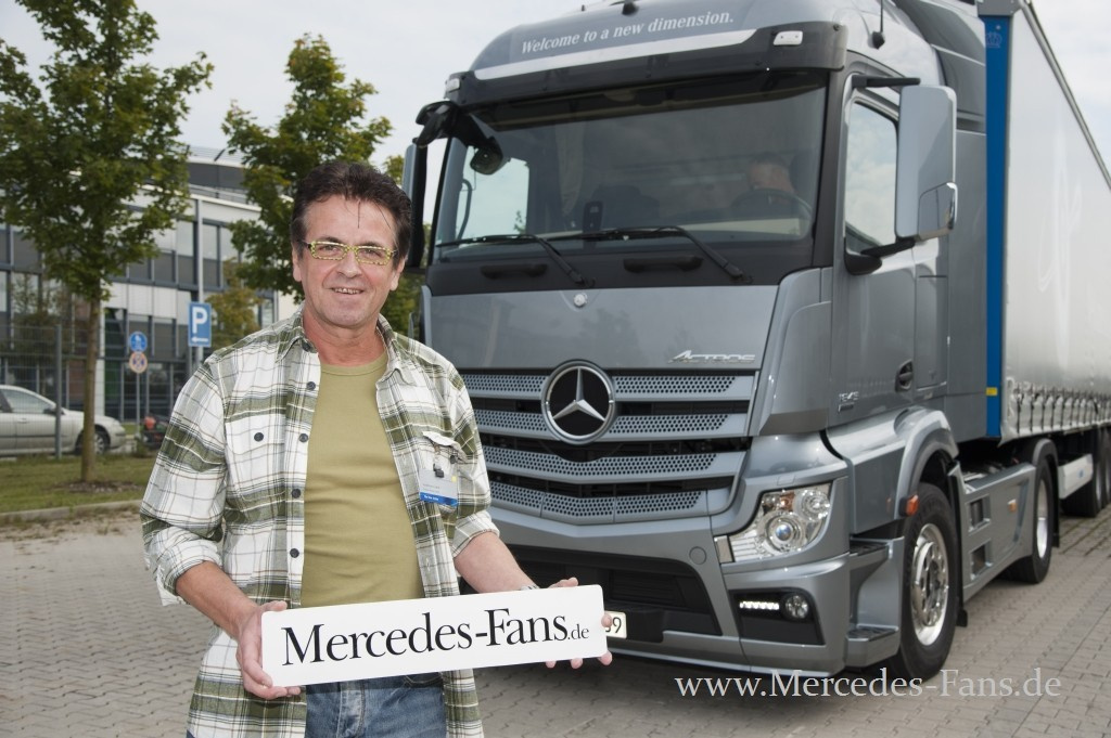 Nach einer phänomenalen Präsentation in Brüssel und seinem Auftritt auf der IAA traf Mercedes-Fans.de kurz danach ein drittes Mal auf das brandaktuelle Flaggschiff von Mercedes-Benz Lkw, den Actros neuester Generation. Doch diesmal sollte es nicht beim bloßen Bestaunen des Lkw-Boliden bleiben: Ein zweitägiges Programm stand auf dem Plan, das neben einer ausführlichen Fahrzeugvorstellung Touren über die Autobahn, zahlreiche Landstraßen und eine Teststrecke vorsah, bei denen der neue Actros sein Fahrpotential in der Praxis unter Beweis stellen durfte.