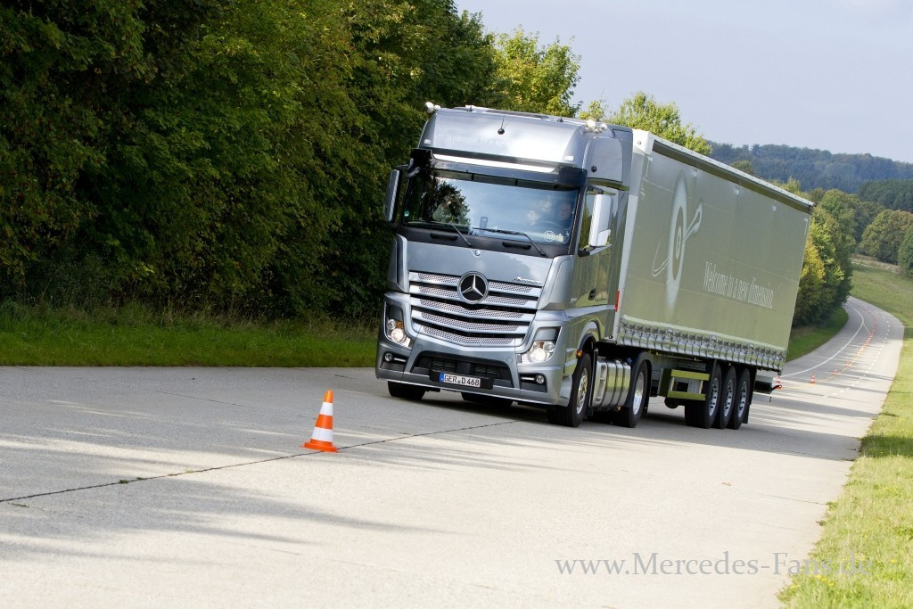 Nach einer phänomenalen Präsentation in Brüssel und seinem Auftritt auf der IAA traf Mercedes-Fans.de kurz danach ein drittes Mal auf das brandaktuelle Flaggschiff von Mercedes-Benz Lkw, den Actros neuester Generation. Doch diesmal sollte es nicht beim bloßen Bestaunen des Lkw-Boliden bleiben: Ein zweitägiges Programm stand auf dem Plan, das neben einer ausführlichen Fahrzeugvorstellung Touren über die Autobahn, zahlreiche Landstraßen und eine Teststrecke vorsah, bei denen der neue Actros sein Fahrpotential in der Praxis unter Beweis stellen durfte.