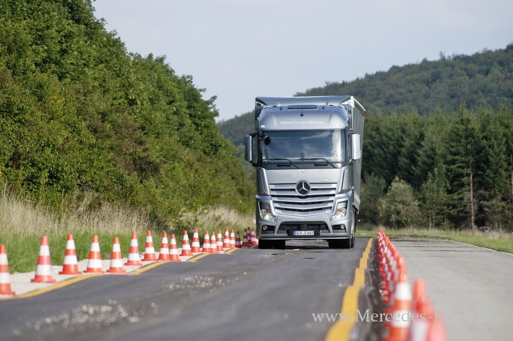 Nach einer phänomenalen Präsentation in Brüssel und seinem Auftritt auf der IAA traf Mercedes-Fans.de kurz danach ein drittes Mal auf das brandaktuelle Flaggschiff von Mercedes-Benz Lkw, den Actros neuester Generation. Doch diesmal sollte es nicht beim bloßen Bestaunen des Lkw-Boliden bleiben: Ein zweitägiges Programm stand auf dem Plan, das neben einer ausführlichen Fahrzeugvorstellung Touren über die Autobahn, zahlreiche Landstraßen und eine Teststrecke vorsah, bei denen der neue Actros sein Fahrpotential in der Praxis unter Beweis stellen durfte.