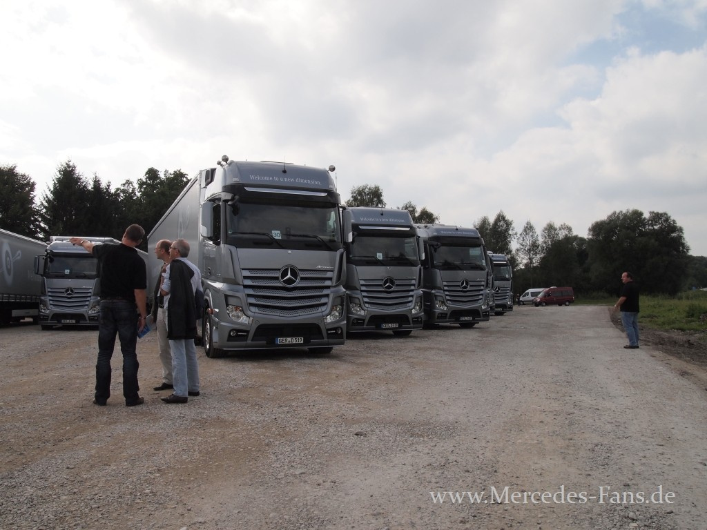 Nach einer phänomenalen Präsentation in Brüssel und seinem Auftritt auf der IAA traf Mercedes-Fans.de kurz danach ein drittes Mal auf das brandaktuelle Flaggschiff von Mercedes-Benz Lkw, den Actros neuester Generation. Doch diesmal sollte es nicht beim bloßen Bestaunen des Lkw-Boliden bleiben: Ein zweitägiges Programm stand auf dem Plan, das neben einer ausführlichen Fahrzeugvorstellung Touren über die Autobahn, zahlreiche Landstraßen und eine Teststrecke vorsah, bei denen der neue Actros sein Fahrpotential in der Praxis unter Beweis stellen durfte.