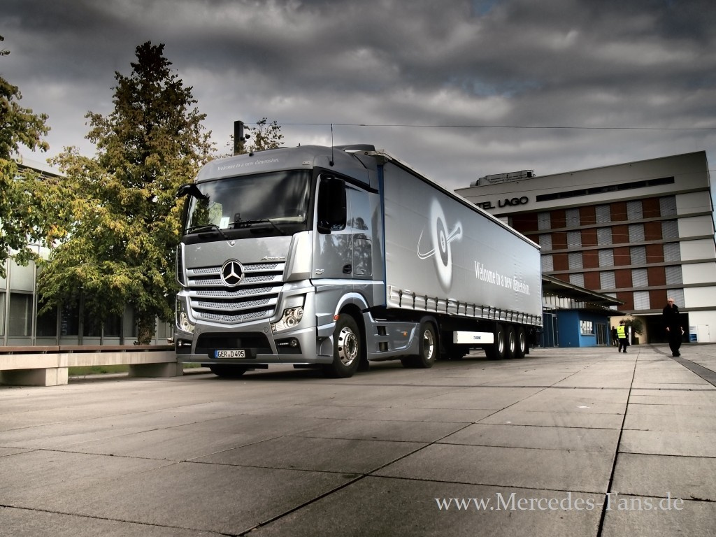 Nach einer phänomenalen Präsentation in Brüssel und seinem Auftritt auf der IAA traf Mercedes-Fans.de kurz danach ein drittes Mal auf das brandaktuelle Flaggschiff von Mercedes-Benz Lkw, den Actros neuester Generation. Doch diesmal sollte es nicht beim bloßen Bestaunen des Lkw-Boliden bleiben: Ein zweitägiges Programm stand auf dem Plan, das neben einer ausführlichen Fahrzeugvorstellung Touren über die Autobahn, zahlreiche Landstraßen und eine Teststrecke vorsah, bei denen der neue Actros sein Fahrpotential in der Praxis unter Beweis stellen durfte.