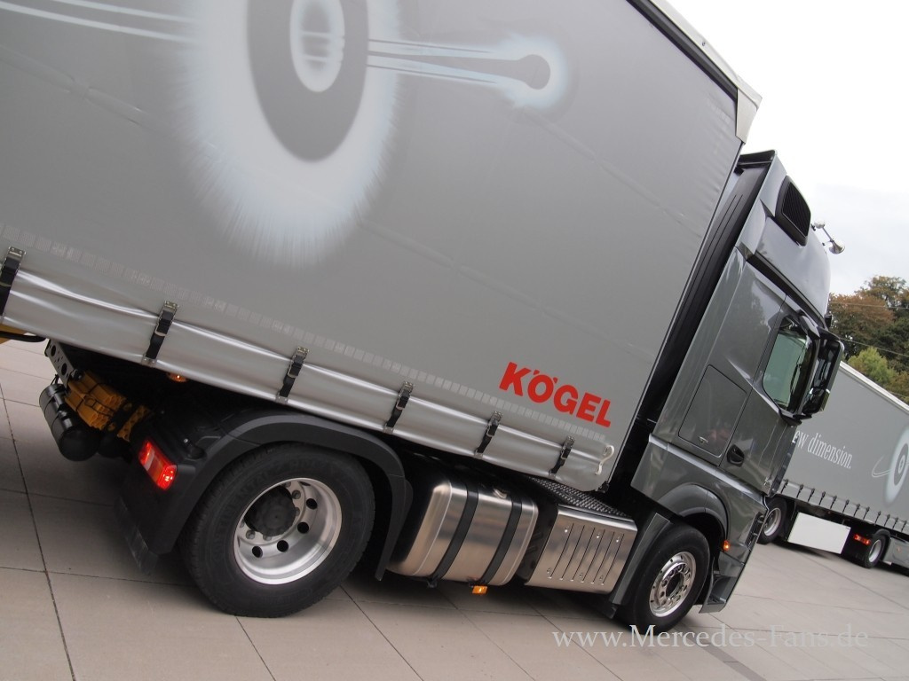 Nach einer phänomenalen Präsentation in Brüssel und seinem Auftritt auf der IAA traf Mercedes-Fans.de kurz danach ein drittes Mal auf das brandaktuelle Flaggschiff von Mercedes-Benz Lkw, den Actros neuester Generation. Doch diesmal sollte es nicht beim bloßen Bestaunen des Lkw-Boliden bleiben: Ein zweitägiges Programm stand auf dem Plan, das neben einer ausführlichen Fahrzeugvorstellung Touren über die Autobahn, zahlreiche Landstraßen und eine Teststrecke vorsah, bei denen der neue Actros sein Fahrpotential in der Praxis unter Beweis stellen durfte.