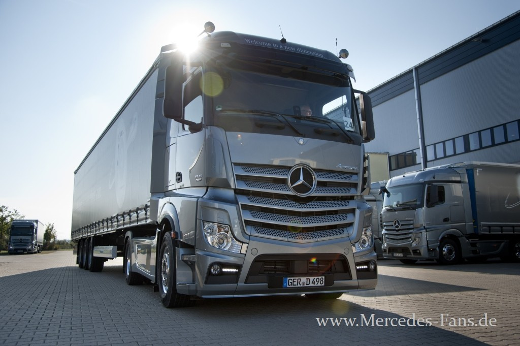 Nach einer phänomenalen Präsentation in Brüssel und seinem Auftritt auf der IAA traf Mercedes-Fans.de kurz danach ein drittes Mal auf das brandaktuelle Flaggschiff von Mercedes-Benz Lkw, den Actros neuester Generation. Doch diesmal sollte es nicht beim bloßen Bestaunen des Lkw-Boliden bleiben: Ein zweitägiges Programm stand auf dem Plan, das neben einer ausführlichen Fahrzeugvorstellung Touren über die Autobahn, zahlreiche Landstraßen und eine Teststrecke vorsah, bei denen der neue Actros sein Fahrpotential in der Praxis unter Beweis stellen durfte.