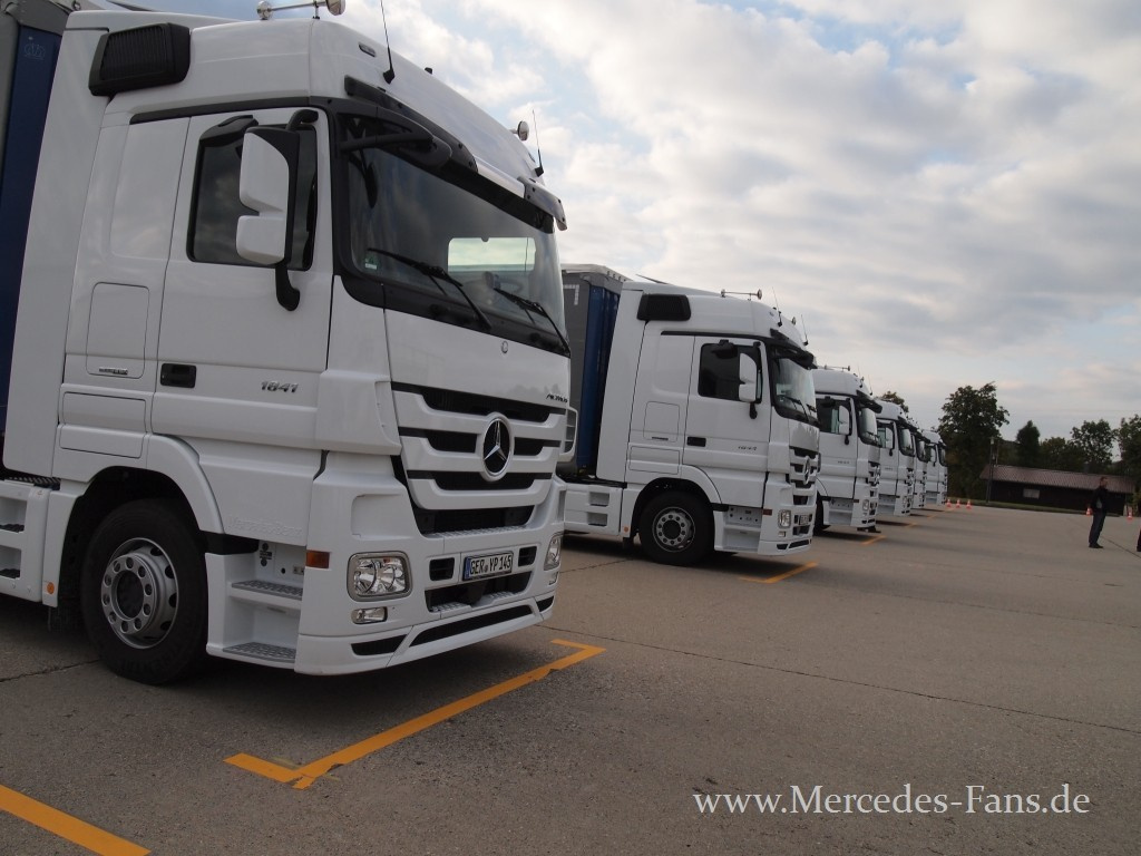 Nach einer phänomenalen Präsentation in Brüssel und seinem Auftritt auf der IAA traf Mercedes-Fans.de kurz danach ein drittes Mal auf das brandaktuelle Flaggschiff von Mercedes-Benz Lkw, den Actros neuester Generation. Doch diesmal sollte es nicht beim bloßen Bestaunen des Lkw-Boliden bleiben: Ein zweitägiges Programm stand auf dem Plan, das neben einer ausführlichen Fahrzeugvorstellung Touren über die Autobahn, zahlreiche Landstraßen und eine Teststrecke vorsah, bei denen der neue Actros sein Fahrpotential in der Praxis unter Beweis stellen durfte.