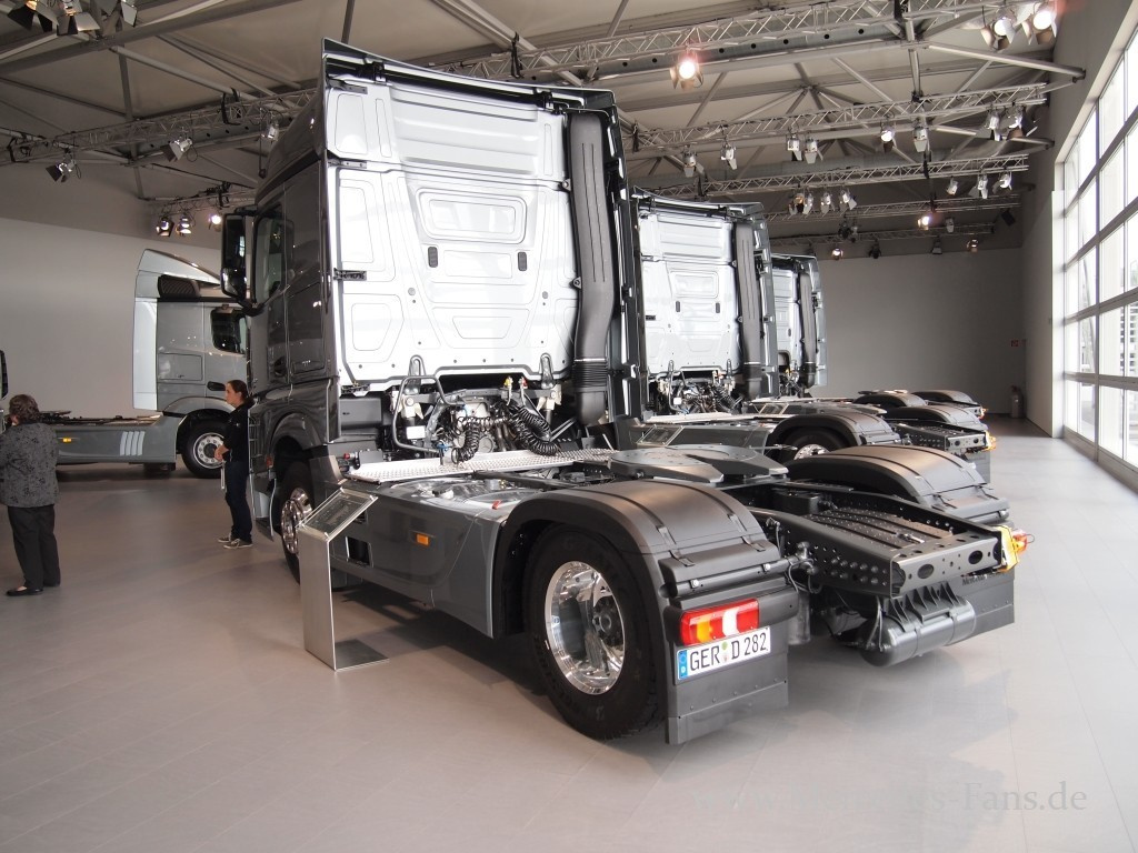 Nach einer phänomenalen Präsentation in Brüssel und seinem Auftritt auf der IAA traf Mercedes-Fans.de kurz danach ein drittes Mal auf das brandaktuelle Flaggschiff von Mercedes-Benz Lkw, den Actros neuester Generation. Doch diesmal sollte es nicht beim bloßen Bestaunen des Lkw-Boliden bleiben: Ein zweitägiges Programm stand auf dem Plan, das neben einer ausführlichen Fahrzeugvorstellung Touren über die Autobahn, zahlreiche Landstraßen und eine Teststrecke vorsah, bei denen der neue Actros sein Fahrpotential in der Praxis unter Beweis stellen durfte.