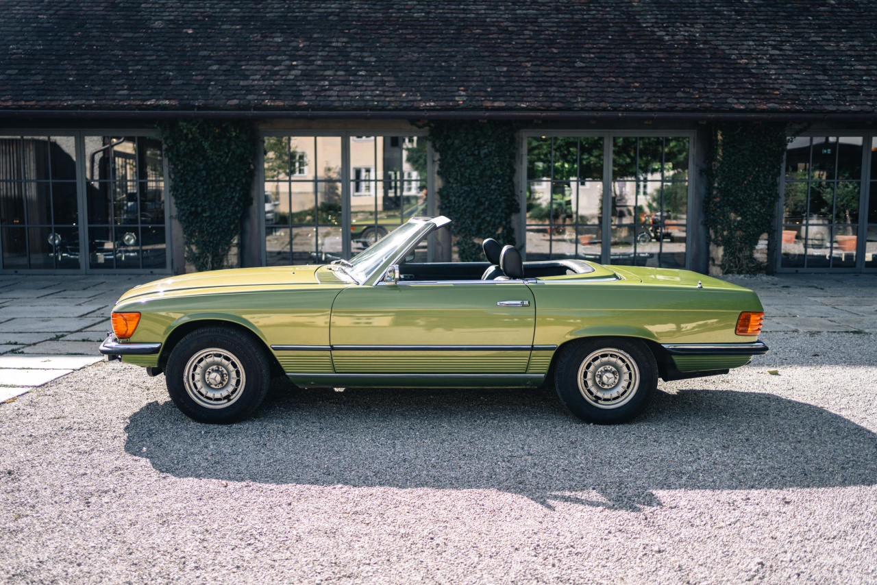 Citrusgrün-metallic statt alltäglichem Schwarz, Silber oder Weiß: Mercedes-Benz 450 SL Roadster steht zum Verkauf
