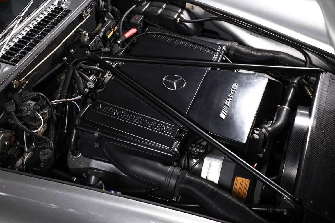Eins müssen wir zu Beginn klarstellen: Der hier gezeigte 300 SL mit AMG-Technik ist ein Original und ganz offiziell bei AMG in Affalterbach so gebaut worden. Vor ca. 20 Jahren wurden von diesem W 198 mit moderner AMG-Technik 11 Fahrzeuge gebaut. Davon 2 Stück als Rechtslenker. Nun kommt eines dieser 11 seltenen Fahrzeuge beim Auto Salon in Tokyo unter den Hammer. Unter der original-aussehenden Blechkarosse steckt ein originalgetreue Rohrrahmen, aber auch ein 6,0 Liter-V8 mit 380 PS anstelle des originalen Reihensechszylinders.