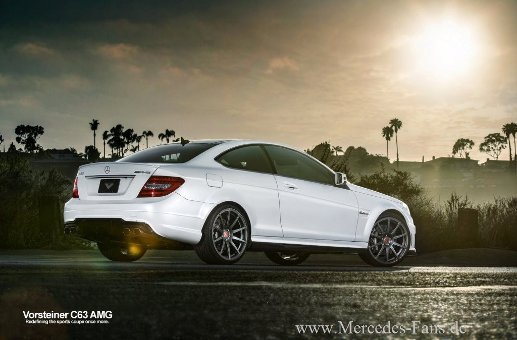 Im April hatte der amerikanische Premiummarken-Tuner Vorsteiner für das Mercedes C63 AMG Coupé ein neues Styling- und die Design-Kit angekündigt. Zwischenzeitlich sidn die Arbeiten an dem Projekt abgeschlossen worden. Und das Werk ist gelungen wie die ersten Outdoor-Fotos von dem Mercedes C63 AMG Coupé im Vorsteiner Trimm bezeugen. Achtung: Die stimmungsvollen Aufnahmen von dem getunten Fotos haben eine Nebenwirkung, denn sie machen so richtig Lust auf das C-Klasse Coupé.