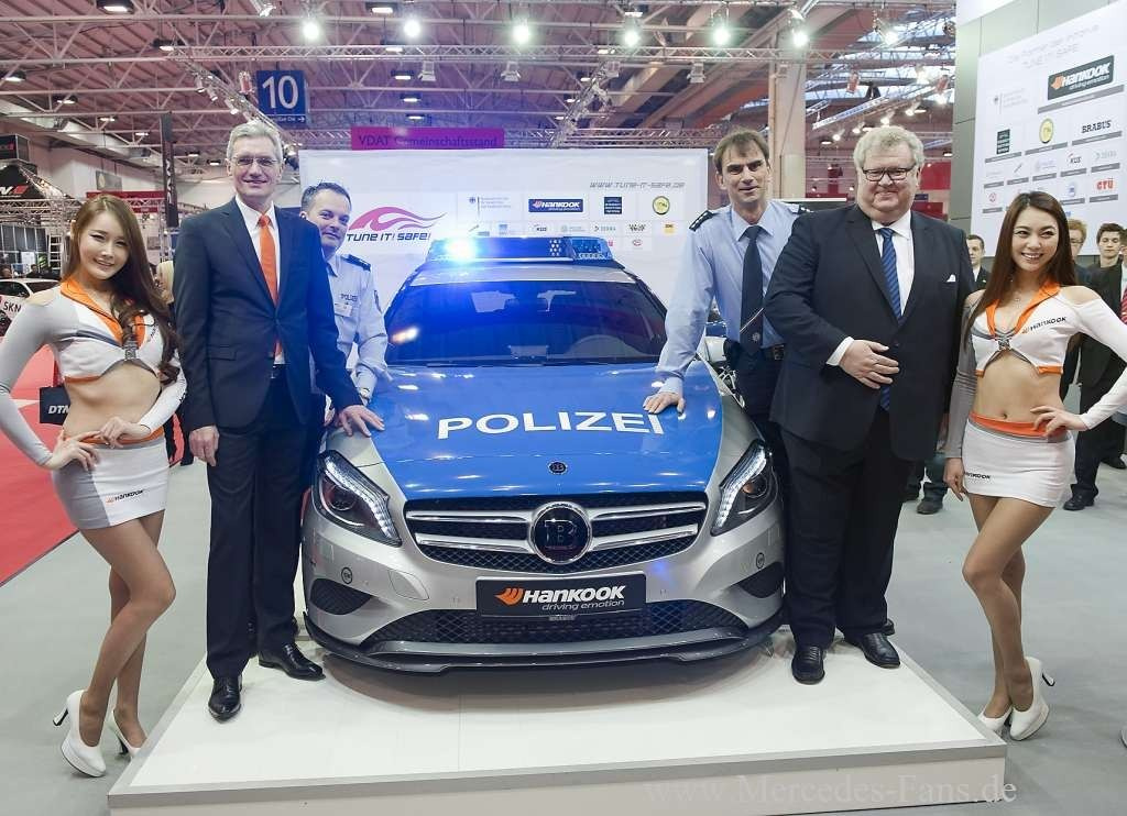 Mit der Neuen A-Klasse von Mercedes-Benz als Einsatzwagen würde der Job der Polizei zwohl zum purem Fahrvergnügen. Wer auf der Essen Motor Show 2012 das neue Kampagnenfahrzeug von TUNE IT! SAFE! gesehn hat, wird wohl völlig zu Recht denken: Aahh, Klasse Tuning! Die von BRABUS veredelte neue A-Klasse von Mercedes Benz soll ein Beispiel für perfektes und sicheres Automobil-Tuning, so wie es auch der Polizei gefällt, sein.