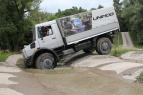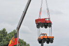 Am Wochenende vom 15.-17.Juni folgte MIB der Einladung zur 25 Jahr Feier „Unimog Club Gaggenau“. Es war überwältigend, was der Club auf die Räder gestellt hat. Von weitem dienten zwei übereinander hängende Unimogs in luftiger Höhe am Haken eines Autokrans als Wegweiser zur Veranstaltung und köderten interessierte Besucher.