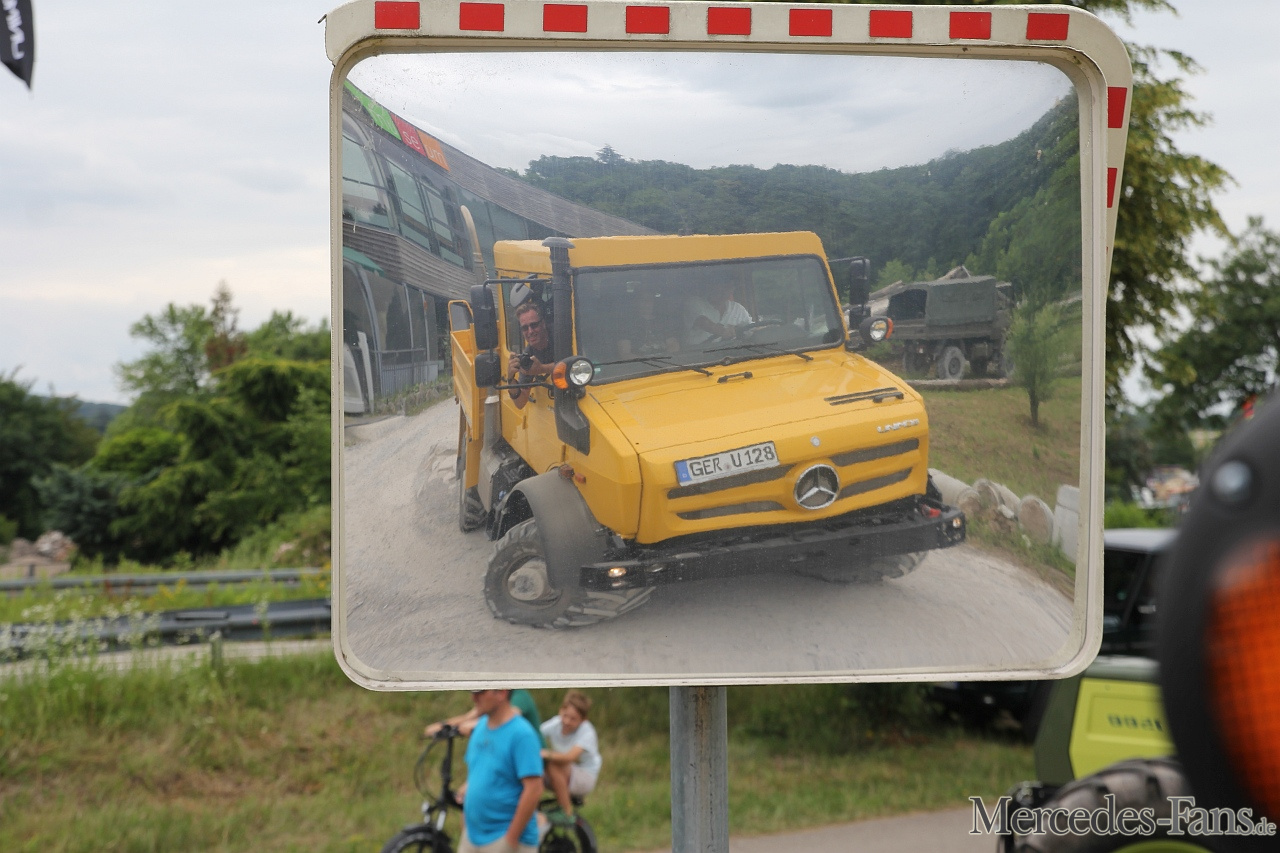 Am Wochenende vom 15.-17.Juni folgte MIB der Einladung zur 25 Jahr Feier „Unimog Club Gaggenau“. Es war überwältigend, was der Club auf die Räder gestellt hat. Von weitem dienten zwei übereinander hängende Unimogs in luftiger Höhe am Haken eines Autokrans als Wegweiser zur Veranstaltung und köderten interessierte Besucher.