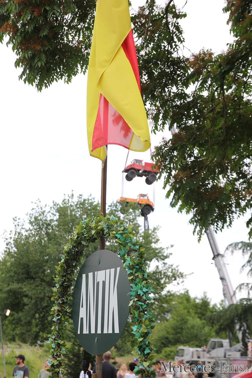 Am Wochenende vom 15.-17.Juni folgte MIB der Einladung zur 25 Jahr Feier „Unimog Club Gaggenau“. Es war überwältigend, was der Club auf die Räder gestellt hat. Von weitem dienten zwei übereinander hängende Unimogs in luftiger Höhe am Haken eines Autokrans als Wegweiser zur Veranstaltung und köderten interessierte Besucher.