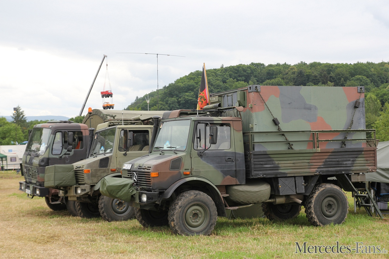 Am Wochenende vom 15.-17.Juni folgte MIB der Einladung zur 25 Jahr Feier „Unimog Club Gaggenau“. Es war überwältigend, was der Club auf die Räder gestellt hat. Von weitem dienten zwei übereinander hängende Unimogs in luftiger Höhe am Haken eines Autokrans als Wegweiser zur Veranstaltung und köderten interessierte Besucher.