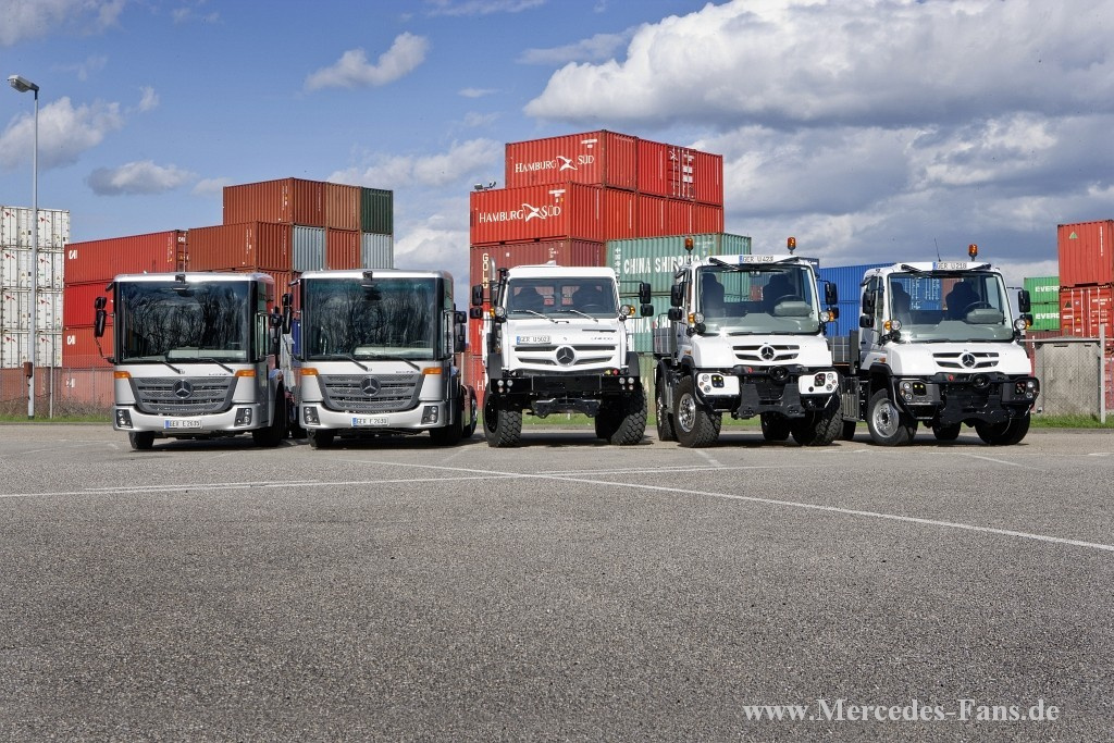 Ein aus gleich zehn Typen bestehendes Unimog-Programm – vom U216 bis zum zum großen Unimog U 5024- sowie 2-und 3 Achvarianten des Low Entry-Spezialfahrzeugs Econic leitet die Ära der Euro VI-Motoren für die Sonderfahrzeuge ein, die ab September in Wörth vom Band rollen. Nach erfolgreicher Einführung der Lkw-Baureihen Actros, Antos, Arocs, Atego in Euro VI setzt Mercedes-Benz heute die Euro-VI Produktoffensive fort und präsentiert in Wörth die neue Generation der einzigartigen Fahrzeugkonzepte: den hochgeländegängigen Unimog, den Unimog Geräteträger und den Econic. Mercedes-Benz bietet damit als bisher einziger Hersteller Europas bereits ein Dreivierteljahr vor Inkrafttreten der neuen Abgasnorm durchgängig im leichten, mittelschweren und schweren Segment, sowie im Bereich Sonderfahrzeuge Euro-VI Fahrzeuge an.