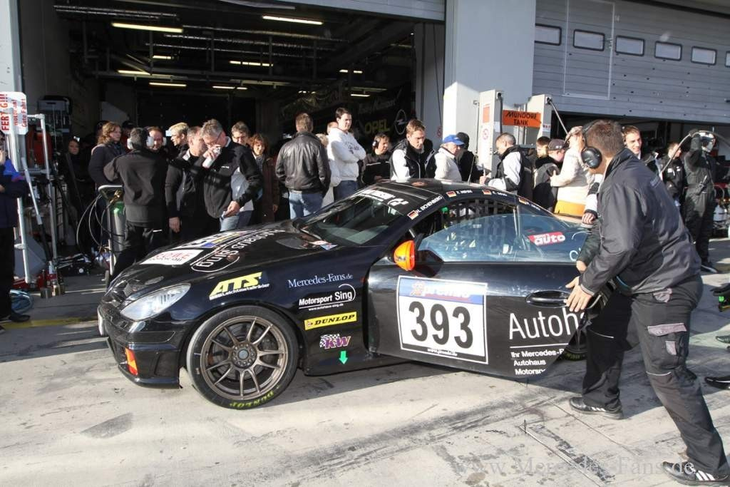 Eigentlich schien der Sing-SLK sehr gut für den zehnten und letzten Lauf der VLN-Saison 2011 vorbereitet gewesen zu sein, doch nach schnellen Rundenzeiten in der Startphase, machte sich nach zwei Reifenschäden in kürzester Zeit Ernüchterung breit. Dabei fing das Rennen mit sehr guten Trainingszeiten für die Mercedes Motorsport-Enthusiasten doch so Erfolg versprechend an.