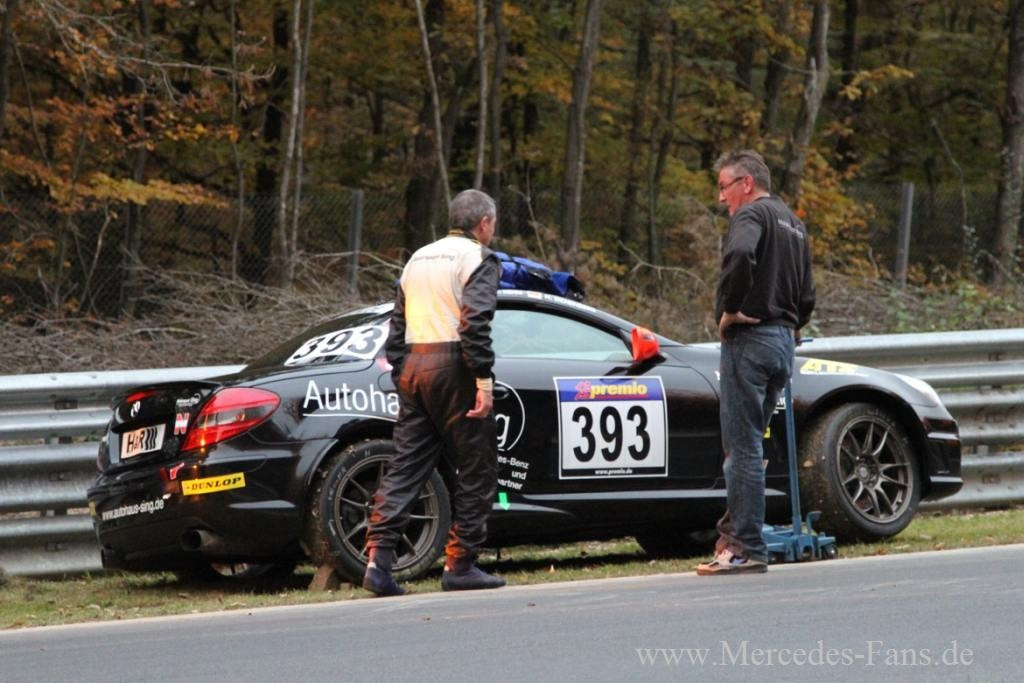 Eigentlich schien der Sing-SLK sehr gut für den zehnten und letzten Lauf der VLN-Saison 2011 vorbereitet gewesen zu sein, doch nach schnellen Rundenzeiten in der Startphase, machte sich nach zwei Reifenschäden in kürzester Zeit Ernüchterung breit. Dabei fing das Rennen mit sehr guten Trainingszeiten für die Mercedes Motorsport-Enthusiasten doch so Erfolg versprechend an.