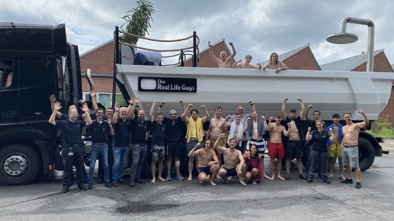 Daimler Truck-Auszubildende bauen zusammen mit den „The Real Life Guys“ fahrbare XXL-Badewanne