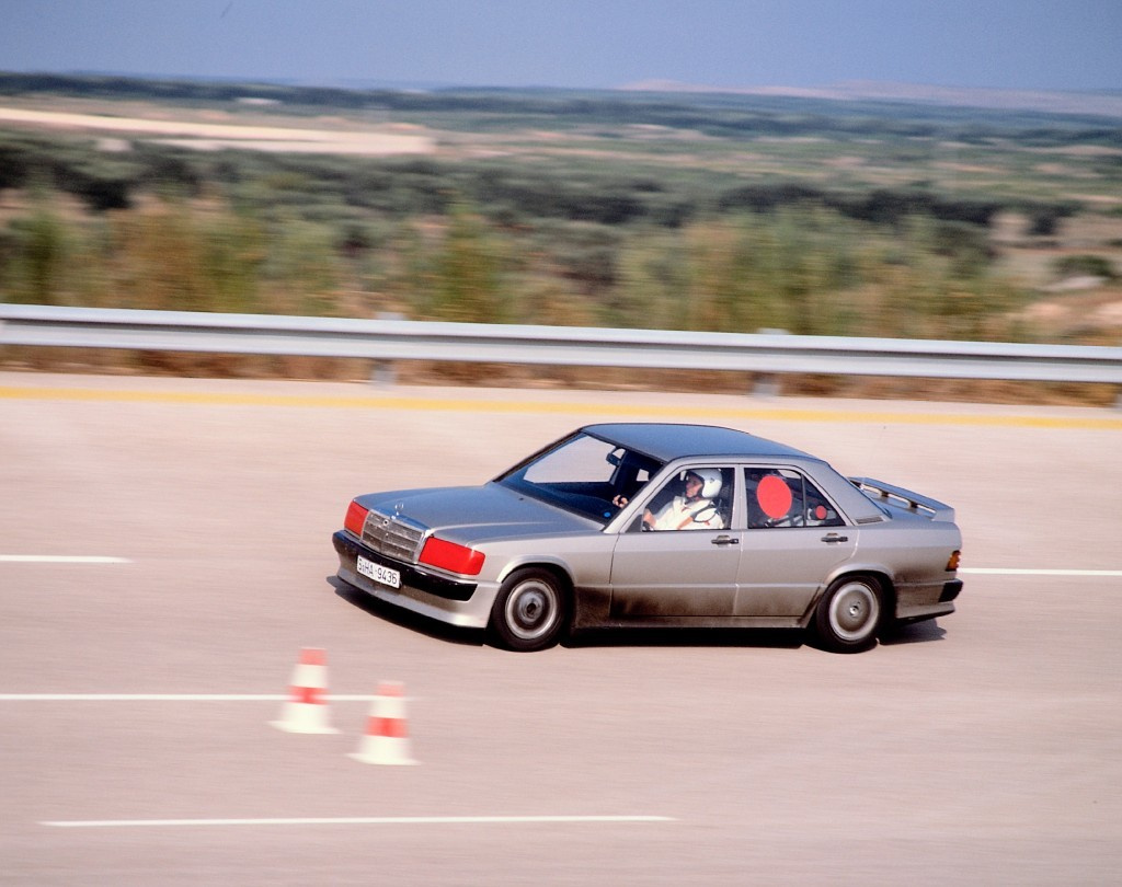 Im Dezember 1982 präsentiert Mercedes-Benz den Typ 190 der Baureihe W 201. Die kompakte und technisch wegweisende Limousine begründet eine dritte Baureihenfamilie der Mercedes-Benz Personenwagen. Nach der Präsentation der neuen Baureihe sind 1983 zunächst nur die Typen 190 und 190 E mit 2-Liter-Vierzylinder-Ottomotor zu haben (90 PS und 122 PS). Ebenfalls 1983 erscheint der Typ 190 E 2.3-16, dessen Motor einen neu entwickelten Vierventil-Zylinderkopf hat und 185 PS leistet. Dieses Spitzenmodell der Baureihe W 201 ist ein Versprechen besonderer Sportlichkeit. Mercedes-Benz beweist dies im August 1983 mit Rekordfahrten auf der Versuchsbahn in Nardo/Italien.