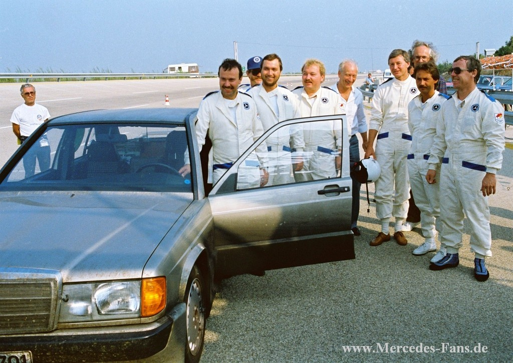 Im Dezember 1982 präsentiert Mercedes-Benz den Typ 190 der Baureihe W 201. Die kompakte und technisch wegweisende Limousine begründet eine dritte Baureihenfamilie der Mercedes-Benz Personenwagen. Nach der Präsentation der neuen Baureihe sind 1983 zunächst nur die Typen 190 und 190 E mit 2-Liter-Vierzylinder-Ottomotor zu haben (90 PS und 122 PS). Ebenfalls 1983 erscheint der Typ 190 E 2.3-16, dessen Motor einen neu entwickelten Vierventil-Zylinderkopf hat und 185 PS leistet. Dieses Spitzenmodell der Baureihe W 201 ist ein Versprechen besonderer Sportlichkeit. Mercedes-Benz beweist dies im August 1983 mit Rekordfahrten auf der Versuchsbahn in Nardo/Italien.